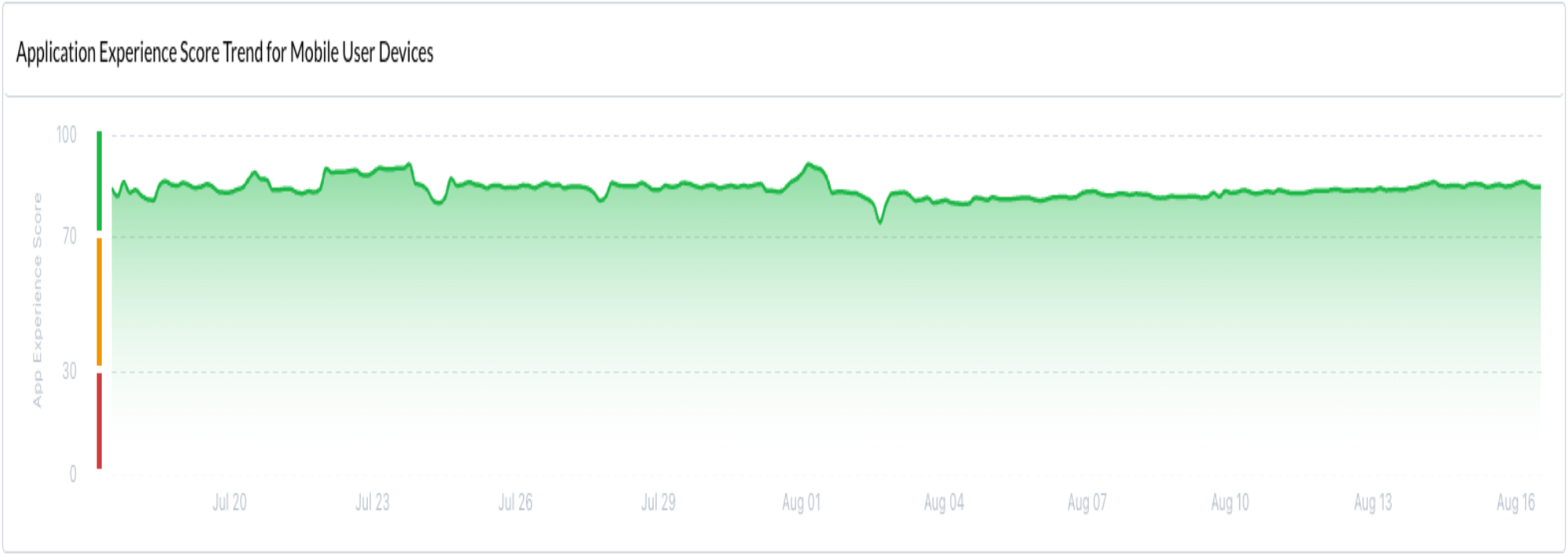 This API retrieves the timeseries for the application experience score trend for all monitored mobile user devices.