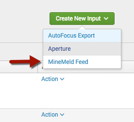 Within the Add-on, click the Inputs tab at the top left. Then click Create New Input and then select MineMeld Feed.